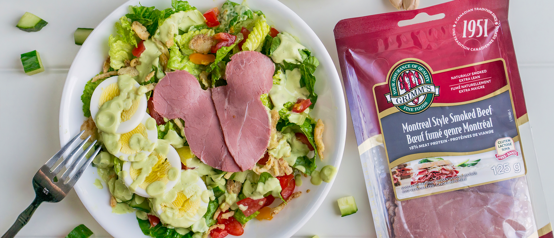 Featured RecipeMontreal Smoked Beef Salad with Avocado Garlic Dressing