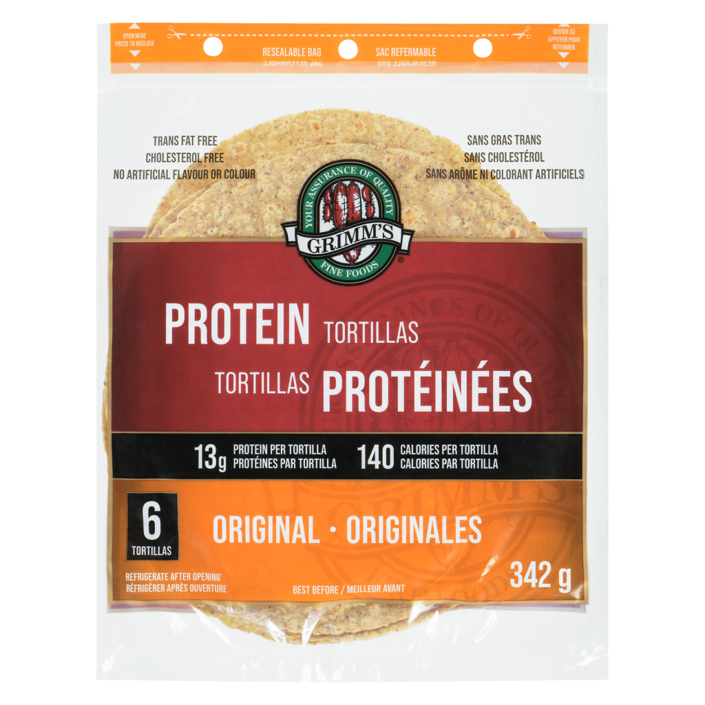 Fuel your day with Grimm’s Protein Tortillas. Packed with 13g of protein, high in fiber, and only 140 calories per tortilla. Perfect for quick meals that keep you full and satisfied.