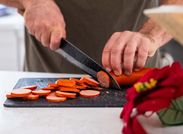 Slice the sausage with a knife. Then Cut the potatoes using a Mandolin or a knife into 1/8 inch thin slices.